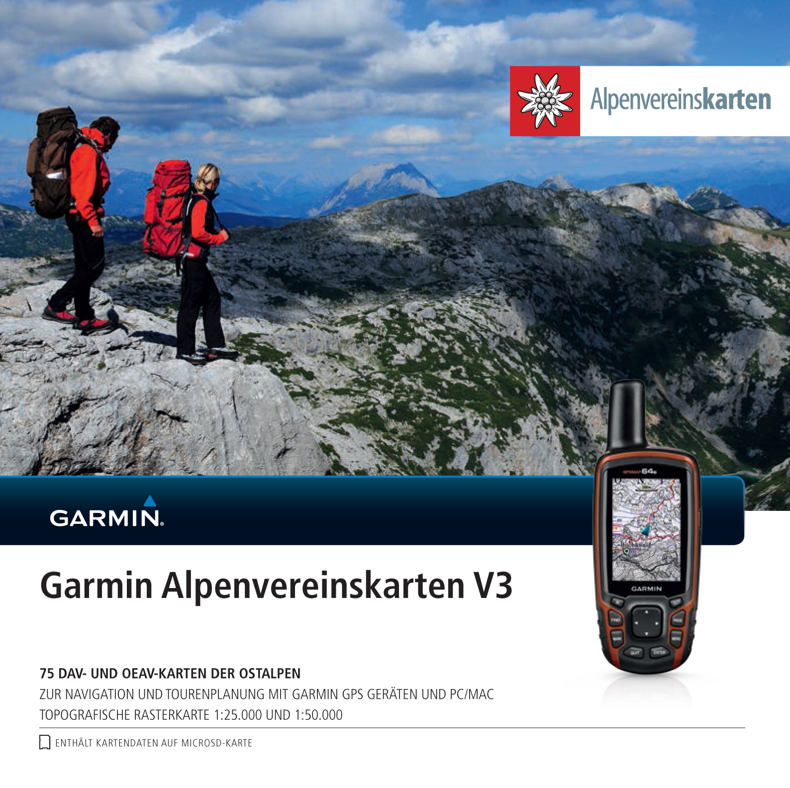 Die neuen Garmin Alpenvereinskarten V3 umfassen 75 für den GPS-Einsatz optimierte AV- Kartenblätter. Neu sind die Blätter Tennengebirge und Hochschwab sowie die Karten BY1 (Allgäuer Voralpen West), BY2 (Kleinwalsertal) und BY4 (Allgäuer Hochalpen), aus der Serie „Alpenvereinskarten Bayerische Alpen“. Sie entstand in Zusammenarbeit mit dem Bayerischen Landesamt für Digitalisierung, Breitband und Vermessung. Zusätzlich wurden 19 der bereits bestehenden Kartenblätter durch aktuellere Versionen ersetzt.