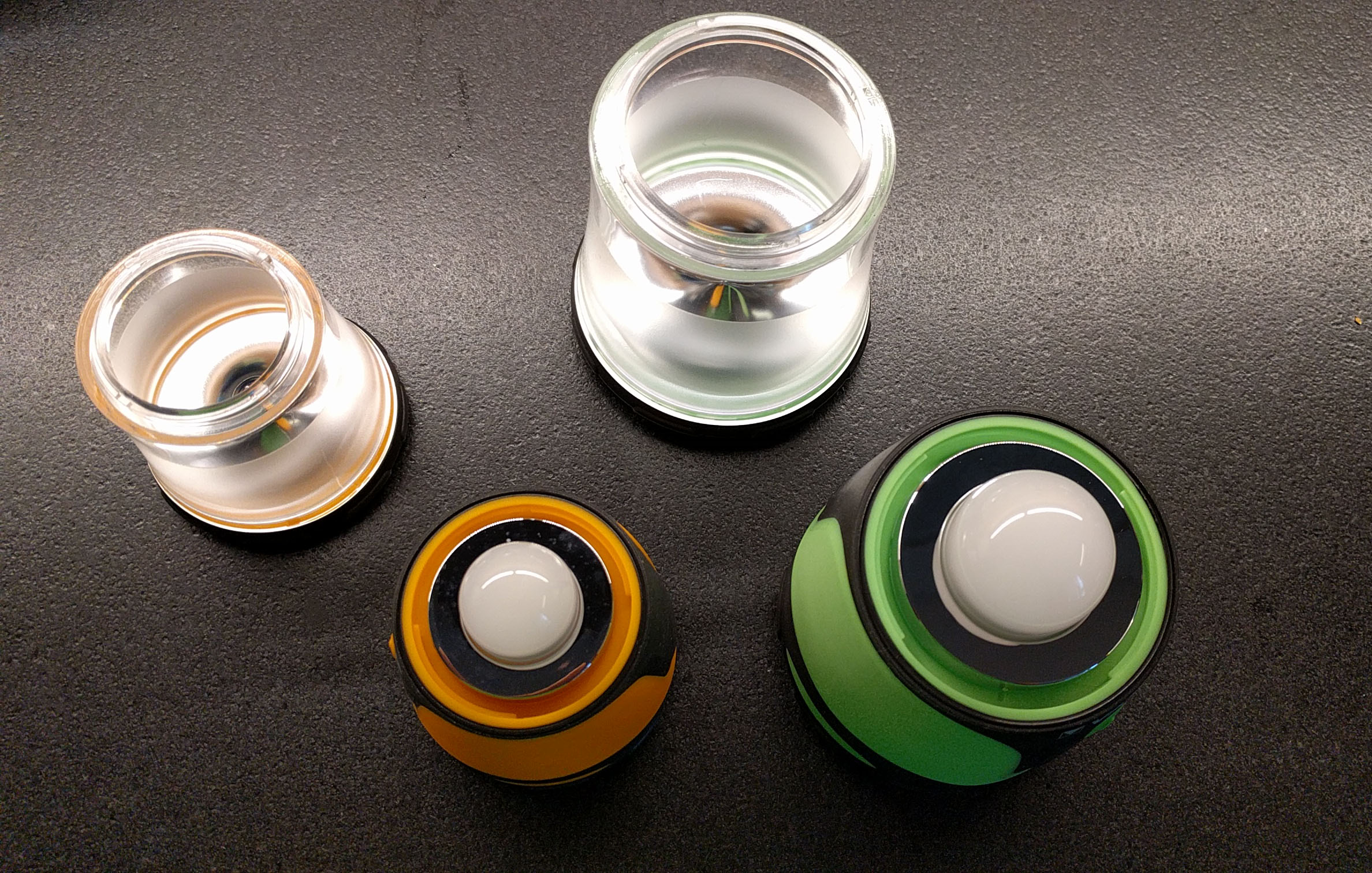 Das kleinere Modell ist die 1 Watt Ausführung in oranger Farbe. Die Lichtleistung wird mit 1 Watt bzw. 90 Lumen angegeben. Damit brennt man zwar kein Loch in die Finsternis, aber für ein Zelt, Plumpsklo, Nachtkästchen, Notlampe, usw. reicht das allemal. Besonders erfreulich ist die angenehm warme Lichttemperatur der fest verbauten Cree LED, wodurch regelrecht Romantik aufkommen kann. Noch dazu lässt sich die Lampe sehr weit herunter dimmen, sodass sie auch als Kerzenersatz bei einem nächtlichen Glas Rotwein auf der Terrasse problemlos dienen kann.